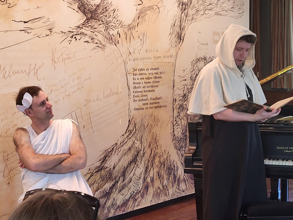 Ve čtvrtek 23. dubna 2026 se studenti kvinty a 2. A zúčastnili v kavárně Avion klavírní show Dějiny hudby v kostce. Představení v podání vynikajících klavíristů T. Vrány a A. Molina, vystupujících jako duo Vrámoll, nabídlo originální spojení koncertu, divadla a kabaretu.