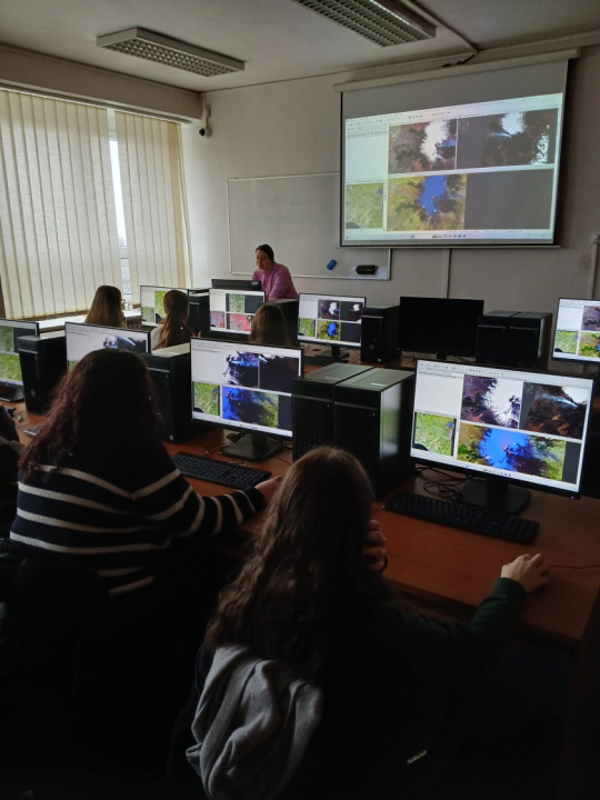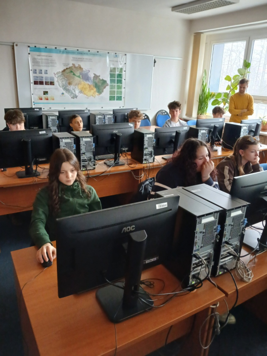Během úvodu se studenti seznámili s tím, co jsou geoinformatické systémy a jakým způsobem vznikají mapy a digitální mapové aplikace, se kterými se dnes běžně setkáváme. Následně jim byly přiblíženy družicové systémy, jejich fungování a praktické využití v různých oblastech – od navigace až po sledování dějů na Zemi.