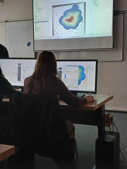Nejzajímavější částí exkurze byla praktická práce v programu Q-GIS, kde si studenti sami vyzkoušeli vytvořit mapovou analýzu šíření cholery v Londýně v roce 1854. Tato aktivita vycházela z historického výzkumu lékaře Johna Snowa, který je považován za zakladatele moderní epidemiologie. Propojení historie, geografie a práce s digitálními daty studenty velmi zaujalo a ukázalo jim, jak lze geoinformatiku využít v reálných a společensky významných tématech.