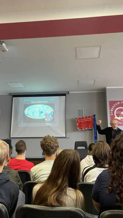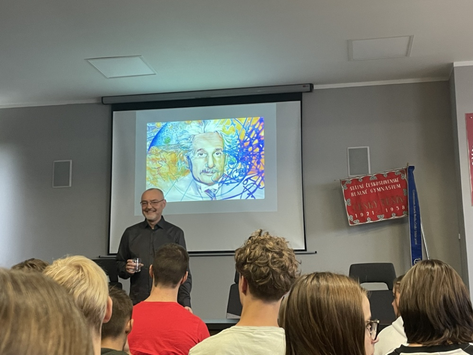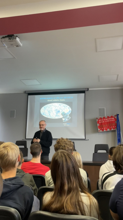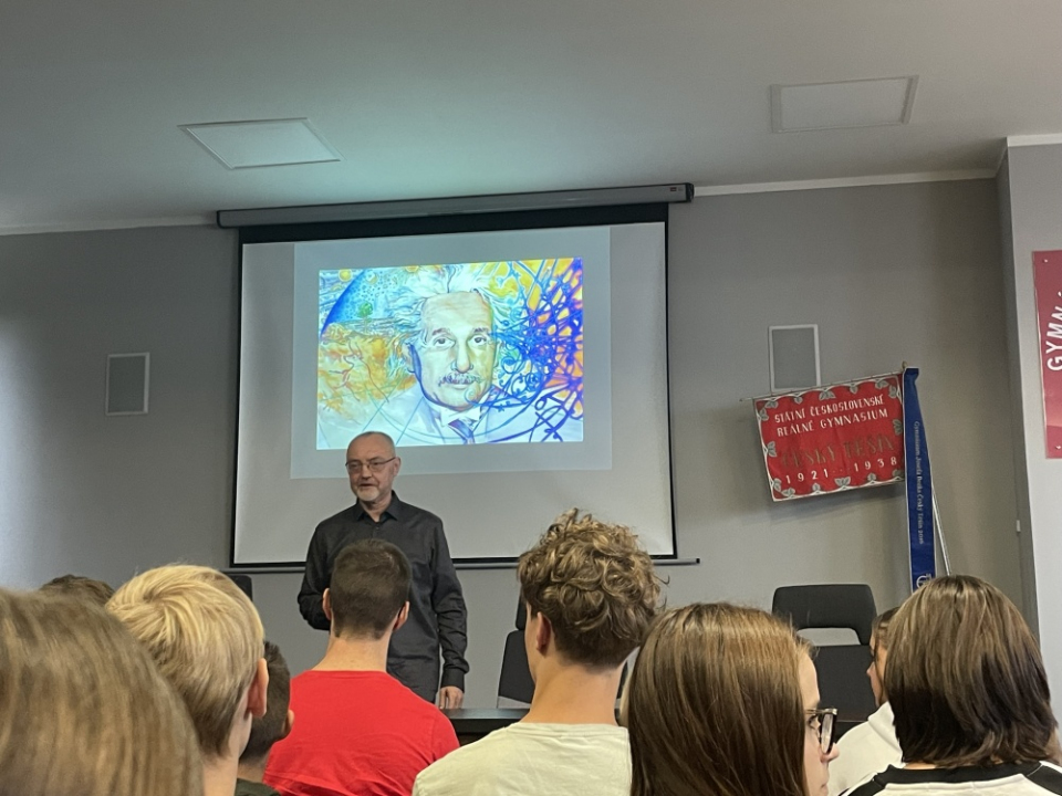 Naši studenti měli 23. 9. 2025 velmi zajímavou přednášku na téma"Einsteinova teorie relativity a dnešní poznání vesmíru", které jim prezentoval prof. RNDr. Jiří Podolský, CSc., DSc. z Ústavu teoretické fyziky Matematicko-fyzikální fakulty Univerzity Karlovy.