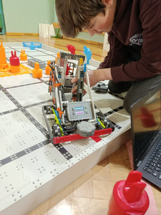 Druhou částí byla RobotSkills, kde robot pracuje samostatně – část jízdy je řízena týmem, část probíhá autonomně podle předem naprogramovaných instrukcí. Tato disciplína prověřuje nejen kvalitu konstrukce, ale i přesnost programování a schopnost optimalizovat výkon pod tlakem času. Zde náš tým obsadil 12. místo.