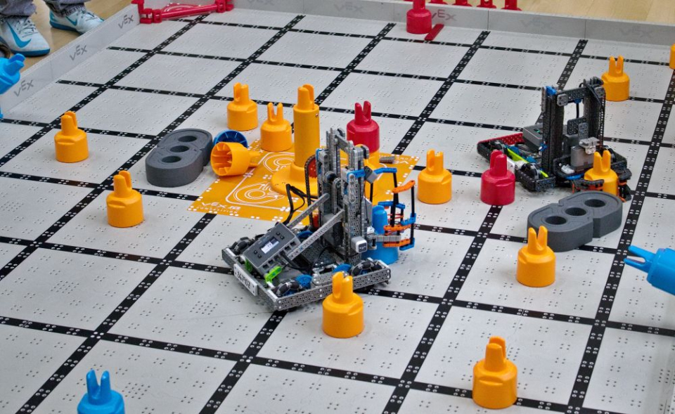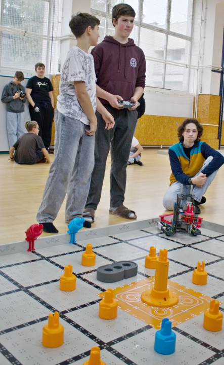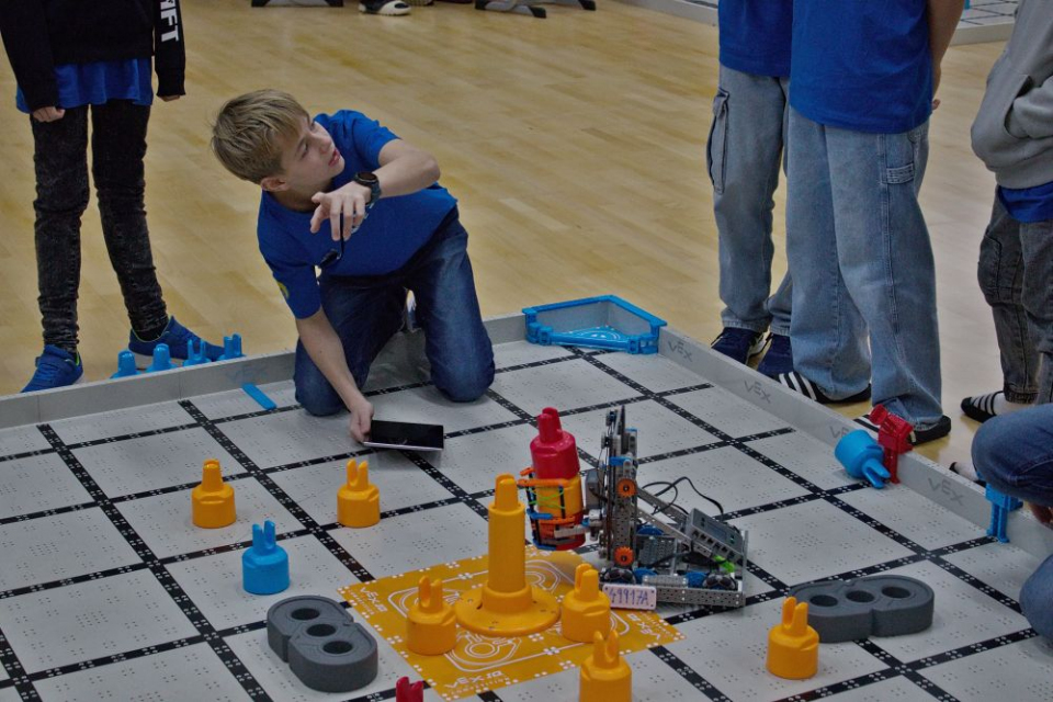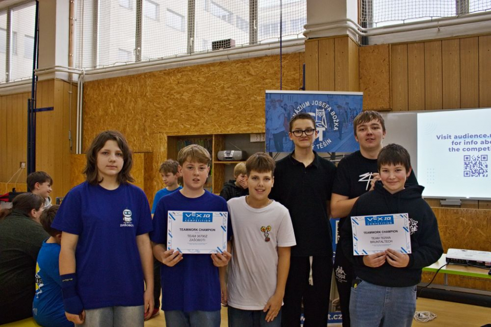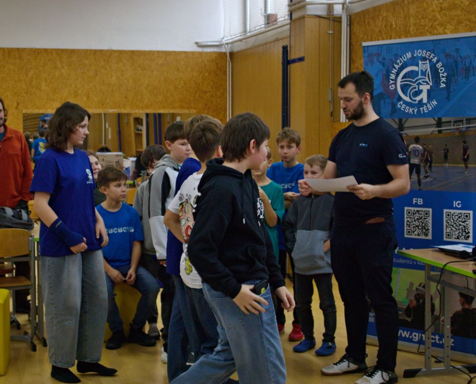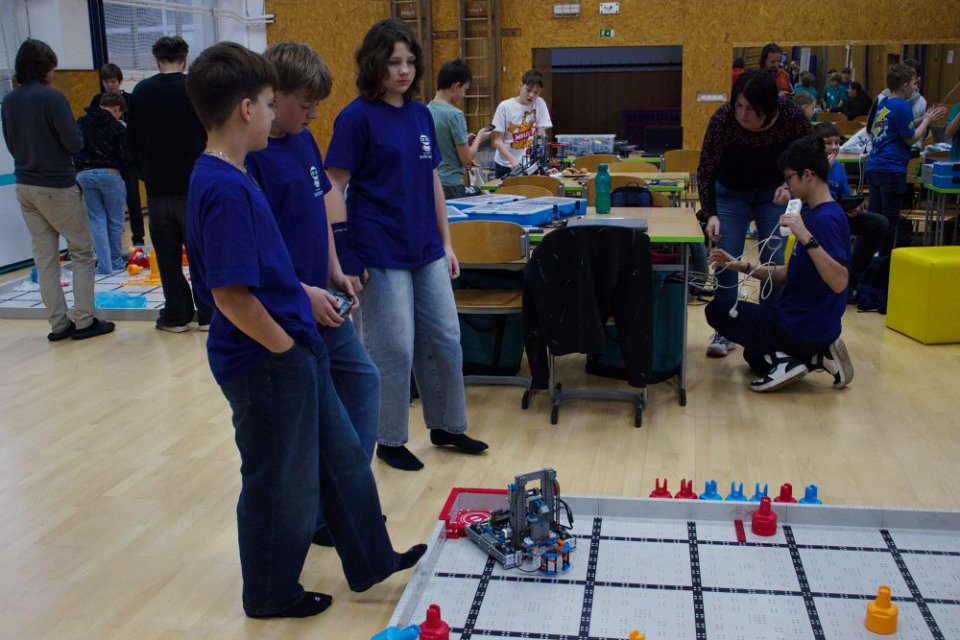 V pátek 5. prosince 2025 se naše malá tělocvična proměnila v centrum robotického dění – proběhlo zde Regionální kolo soutěže VEX IQ Robotics Competition. Atmosféra byla od rána plná očekávání, soustředění a nadšení, protože se do závodů zapojilo šest týmů, mezi nimi i dva domácí: Robobožci 2.0 a Python.
