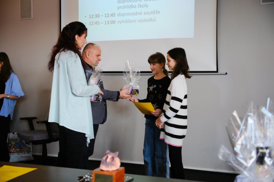 Pro soutěžící, kteří zrovna nebyli na řadě, připravili bohatý doprovodný program – od her o sladké odměny až po možnost prohlídky školy, během níž si žáci mohli prohlédnout učebny, laboratoře i další zajímavá zákoutí gymnázia.