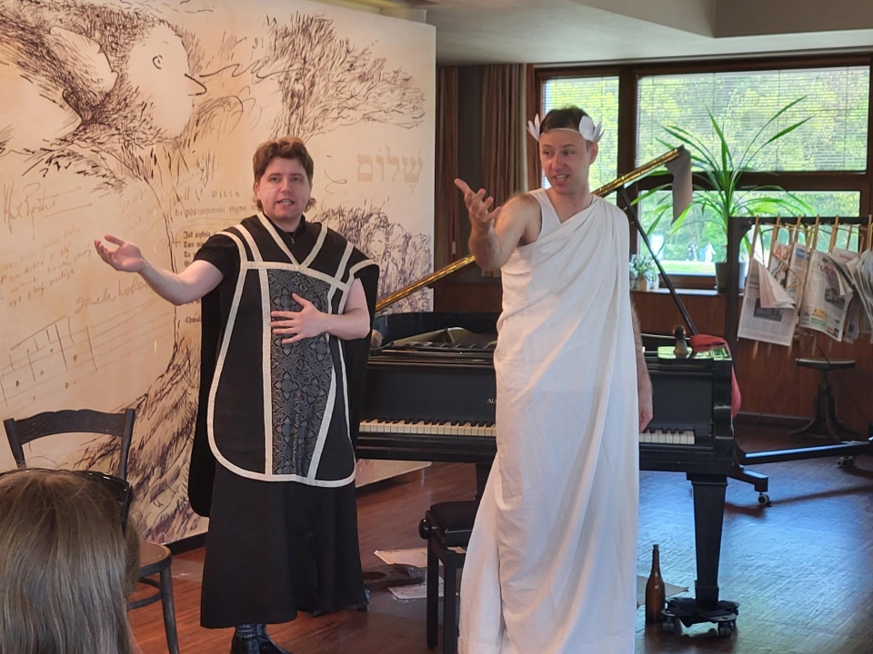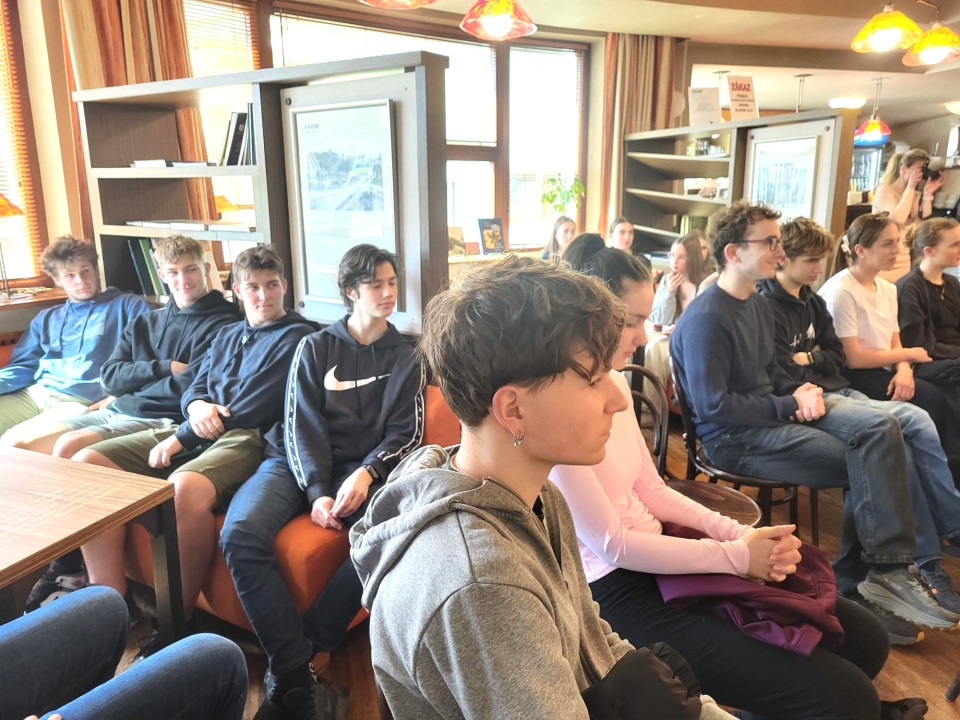 Ve čtvrtek 23. dubna 2026 se studenti kvinty a 2. A zúčastnili v kavárně Avion klavírní show Dějiny hudby v kostce. Představení v podání vynikajících klavíristů T. Vrány a A. Molina, vystupujících jako duo Vrámoll, nabídlo originální spojení koncertu, divadla a kabaretu.