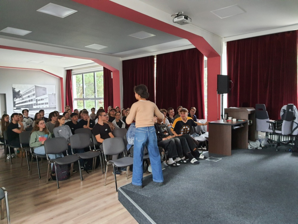 „Kdo si nepamatuje minulost, je odsouzen k jejímu opakování.“ Pravdivá a natolik aktuální slova George Santayana se stala inspirací pro prožitkový workshop, který se uskutečnil na naší škole v pondělí 6. 10. 2025 pro studenty 3. a 4. ročníků. Vzdělávací rozměr zajistilo ostravské Centrum PANT ve spolupráci s hereckou dvojicí mladých elévů.