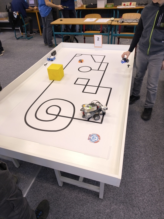Naše dvě družstva soutěžila v Robosumu NE LEGO. V této kategorii společné pro ZŠ i SŠ se utkalo celkem 28 týmů. Základní kolo proběhlo ve čtyřech skupinách po osmi, semifinále ve dvou skupinách po šesti a finále ve čtyřčlenné skupině. Vždy systémem každý s každým na tři kola.